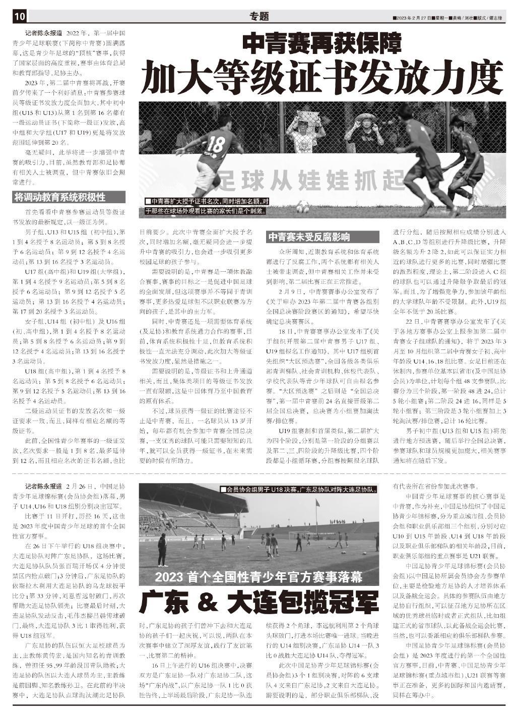 記者陳永報道 2022年,第一屆中國青少年足球聯賽(下簡稱中青賽)圓滿落幕,這是青少年足球的“頂核”賽事,獲得了國家層面的高度重視,賽事由體育總局和教育部指導,足協主辦。