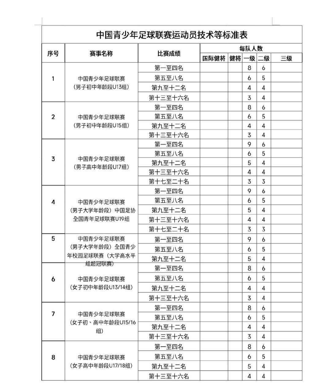 首先看看中青賽參賽運動員等級證書發放的最新規定,以一級證爲例。