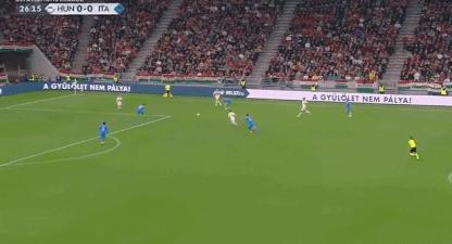 第27分鐘,匈牙利後場回傳失誤,拉斯帕多里搶斷後打空門得手,意大利取得1-0領先。