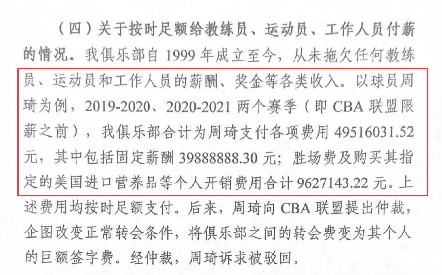 除此之外,新疆男籃在公告裏面還寫道,他們在2019至20和2020至21兩個賽季,合計爲周琦支付各項費用4900萬,俱樂部在近24年來,累計投入23.1億元,接近一年虧一個億。