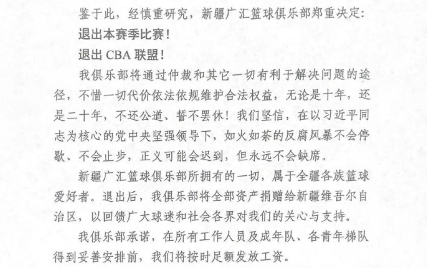 新疆男籃這邊退出CBA,主要是有三點不滿,包括控訴籃協對俱樂部的處罰、籃協主席和CBA聯盟董事長姚明讓中國籃球行業亂象叢生、以及球員周琦多次抹黑俱樂部。他們直言中國籃協的處罰是嚴重錯誤和無理荒誕的。