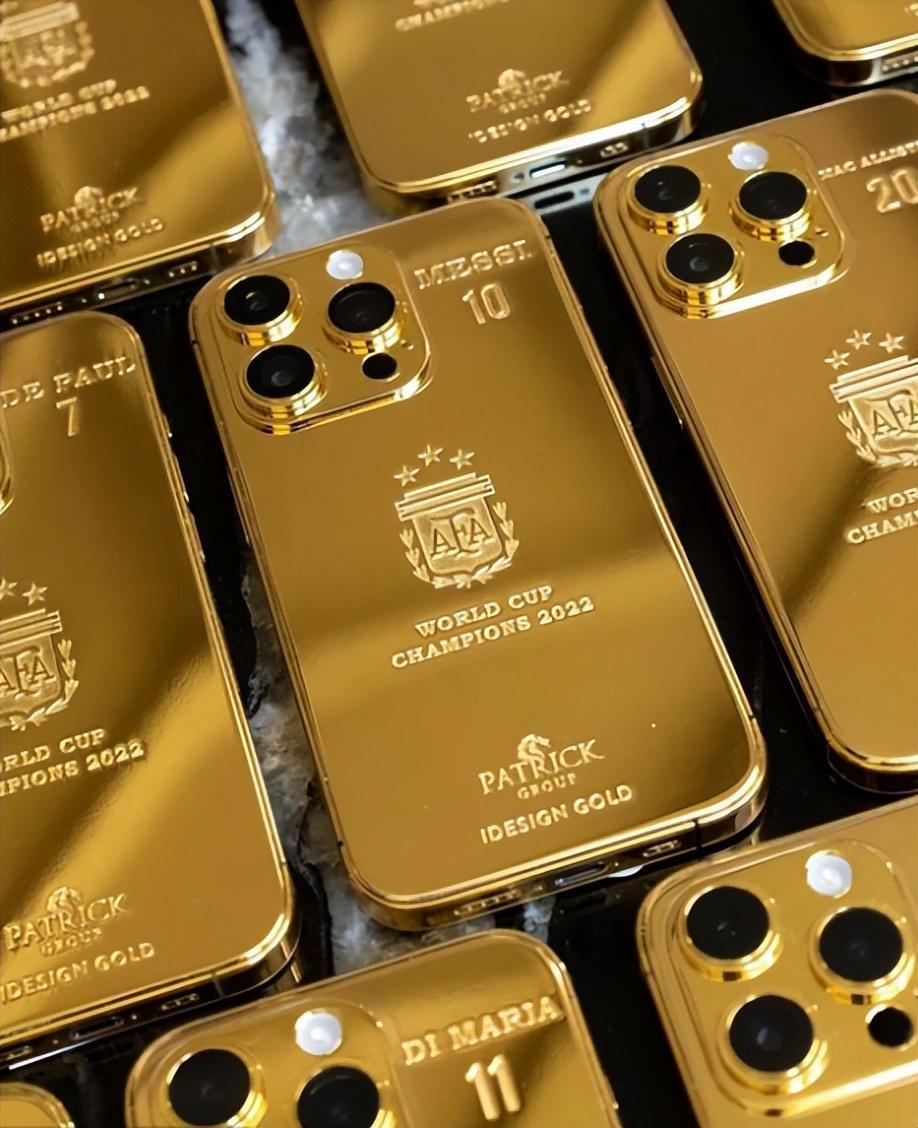 梅西爲阿根廷全隊定製的這35部黃金iPhone,每部手機上刻有球員名字、號碼和阿根廷隊的標誌,含金量爲4.8g。這35部手機,讓梅西花費了17.5萬英鎊,摺合人民幣144萬。儘管跟在巴薩相比,梅西在大巴黎領到的年薪已縮水超過一半,但仍然能領着3800萬歐元的天價年薪,摺合人民幣2.78億。也就是說,他的日薪能達到76萬人民幣,這35部黃金iPhone也就花了他2天的工資。