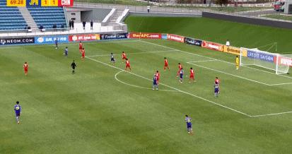 在第66分鐘和第70分鐘,熊田直紀頭頂腳踢完成梅開二度,日本瞬間反超比分2-1。