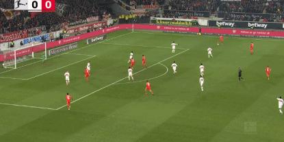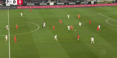 第59分鐘,拜仁發動快速反擊,穆西亞拉大單刀機會但速度沒有起來,最後想橫傳找跟進上來的舒波-莫廷,結果被原口元氣滑鏟攔截。