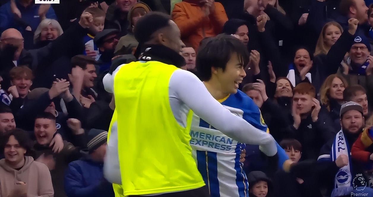 三笘薰在第69分鐘門前包抄剷射空門得手後,在31523名球迷面前滑跪慶祝,整座法爾馬球場瞬間掌聲如雷。