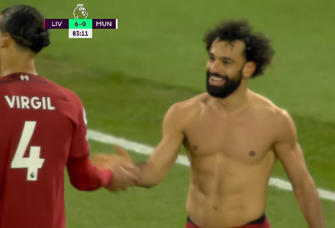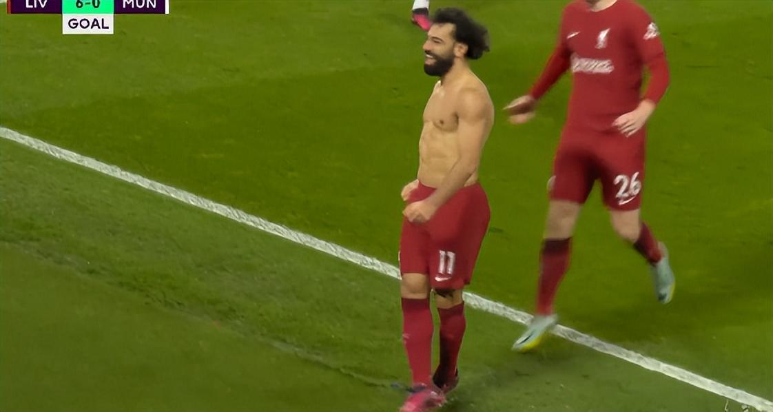 在第83分鐘完成梅開二度幫助利物浦把比分擴大至6-0時,薩拉赫在安菲爾德數萬名球迷面前脫掉球衣瘋狂慶祝。