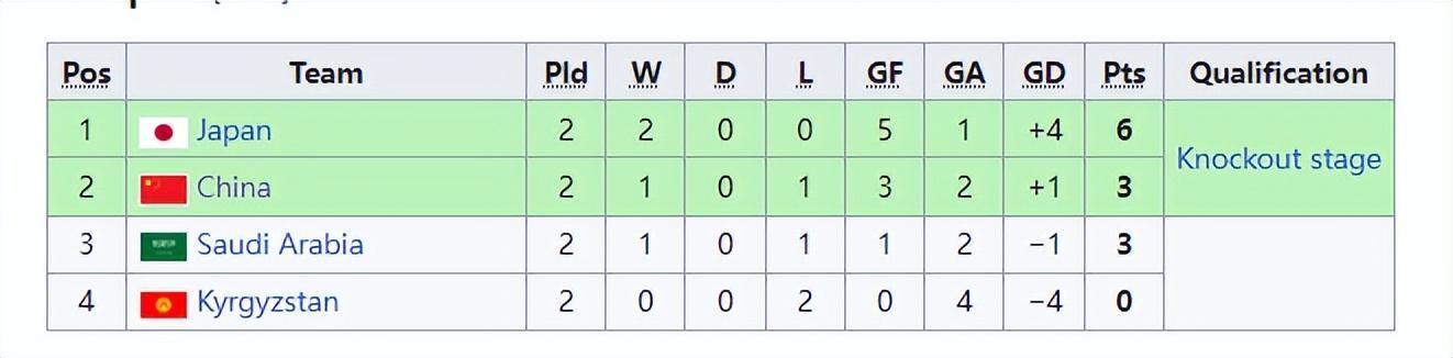 中國隊所在的D組,跟B組的情況很像。中國隊跟澳大利亞一樣,在首輪落敗之後在第二輪拿到了3分;日本跟越南一樣是開局兩連勝坐穩小組第一,而沙特則跟伊朗一樣首輪贏球但第二輪輸球。