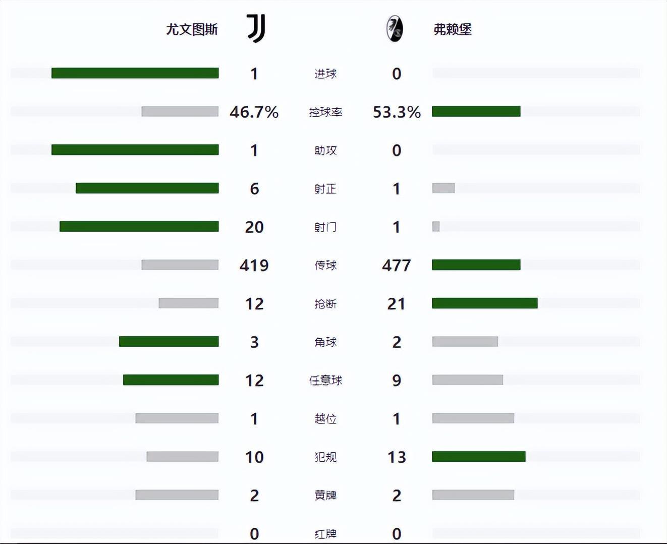 此後,雙方都無法再次改寫比分,最終尤文1-0擊敗弗萊堡。