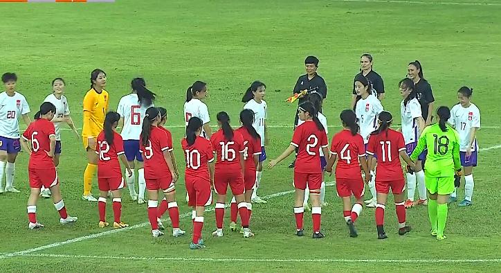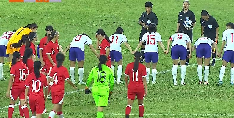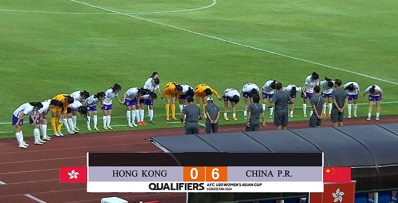 賽後,中國女足U20做了一個好榜樣,她們手牽手對着站在中圈裏的三位裁判鞠躬致謝。原本已經準備離開的中國香港女足球員,也集體轉身返回向裁判組致謝。