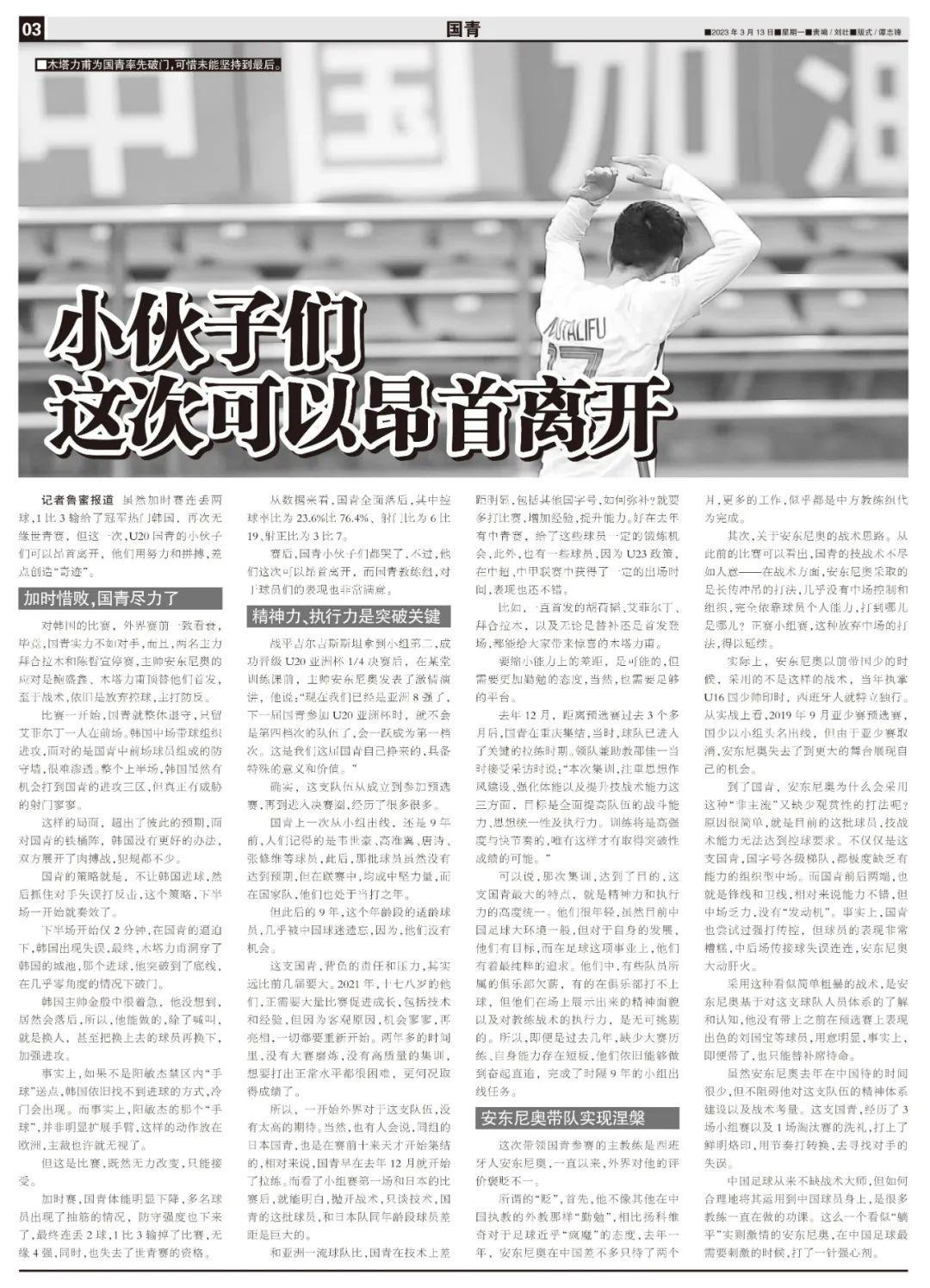 記者魯蜜報道 雖然加時賽連丟兩球,1比3輸給了冠軍熱門韓國,再次無緣世青賽,但這一次,U20國青的小夥子們可以昂首離開,他們用努力和拼搏,差點創造“奇蹟”。