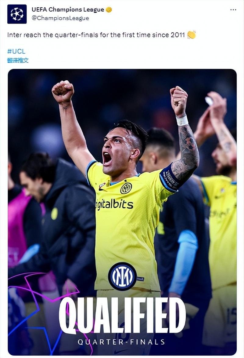 歐冠1/8決賽次回合,國米客場0-0波爾圖,曼城主場7-0大勝萊比錫,最終國米和曼城各拿到一張8強門票,本賽季歐冠8強只剩最後2個席位。