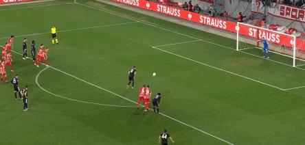 第57分鐘,弗萊堡利用前場定位球製造混亂,什琴斯尼在近角做出了一次關鍵撲救。