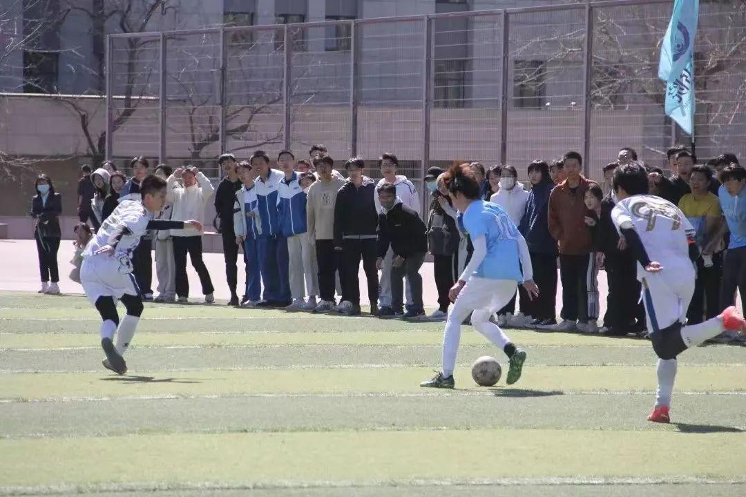 球場邊更是熱鬧,每個學院都有各自的“助威團”,有人在拍照,有人揮舞着大旗,有精彩的場面出現時,所有人都會叫好,當然,輸了比賽的一方也難免會有些沮喪。賽事第一天就上演了點球大戰,將氛圍推向了高潮,這個中午,足球場成了北大附中最熱鬧的地方。