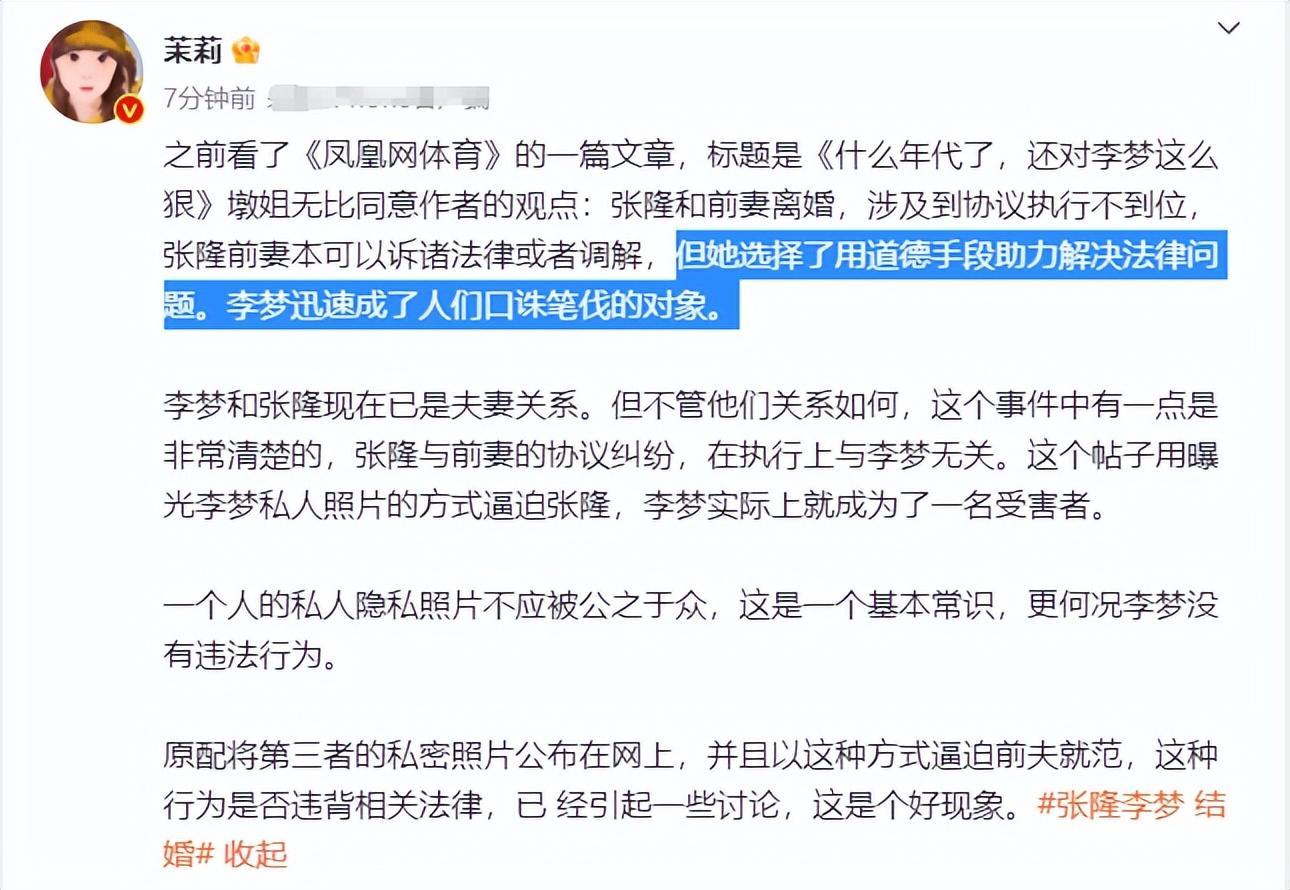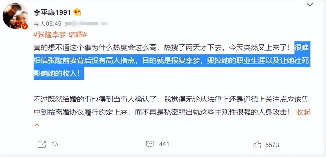 李夢小三門事件已經過去三天,張隆前妻在昨日突然又再次發聲,並承認李夢張隆已領證結婚。