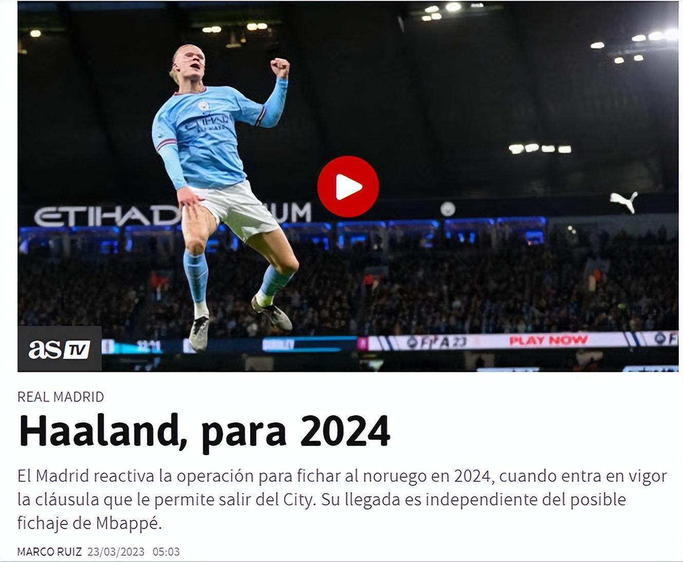 北京時間3月23日,《阿斯報》稱,皇馬將重啓簽約哈蘭德的計劃,他們最高願意出2.4億歐元引進哈蘭德,有望打破世界足壇轉會紀錄。