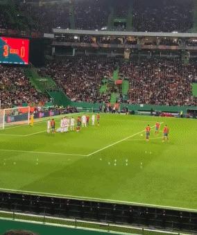 現場一共有45378名球迷見證,看到C羅打進這一記技驚四座的任意球后,現場4萬人均振臂高呼,同時爲準備做出招牌式慶祝的C羅高喊“SIU”,場面相當震撼。
