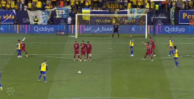 這是C羅背靠背完成任意球破門,在5天前的沙特聯賽中,C羅剛爲利雅得勝利打進一粒精彩的任意球。
