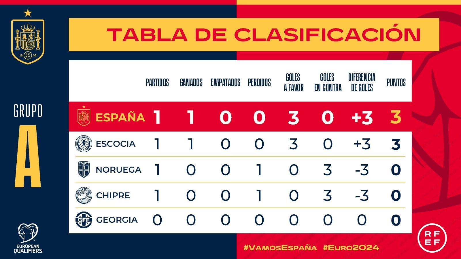 同組的另一場比賽,蘇格蘭主場3-0輕取魚腩球隊塞浦路斯,同樣也收穫了3分。目前,西班牙和蘇格蘭同時領跑A組積分榜。