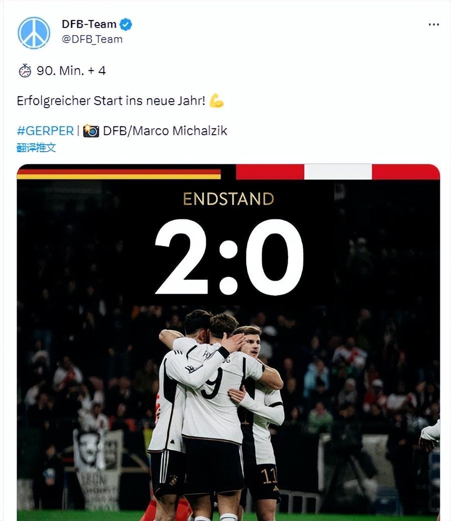 國際友誼賽,菲爾克魯格在上半場完成梅開二度,幫助德國隊2-0擊敗祕魯,收穫2023年首勝。在去年的卡塔爾世界盃上,德國1勝1平1負小組賽出局。