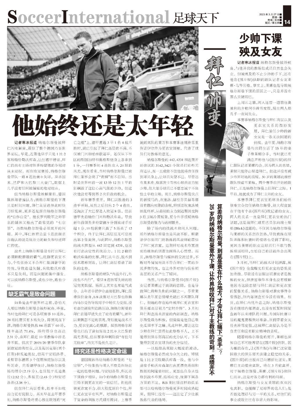 當然,與納格爾斯曼和《圖片報》女記者萊娜過於高調的戀情,也是導致拜仁將帥失和的問題之一。儘管萊娜從去年夏戀情曝光就已不再跟隊拜仁,但她的存在始終被拜仁更衣室和俱樂部高層視爲“定時炸彈”。3月初拜仁徹查戰術泄密的內部調查,納格爾斯曼最爲積極,但偏偏是他自己難免瓜田李下之嫌。凡此種種,都讓這位少帥在拜仁顯得如此格格不入,上不能得到俱樂部高層的充分認可,下不能得到更衣室球員的充分信任。