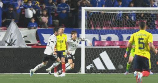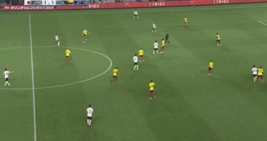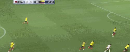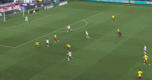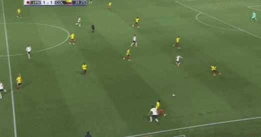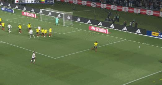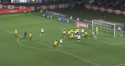 第66分鐘,替補上場的上田綺世頭球被哥倫比亞門將飛身撲出
