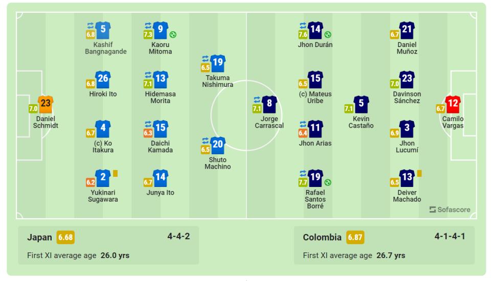 最終,憑藉杜蘭和博雷上下半場各進一球,哥倫比亞在落後的情況下逆轉日本2比1取勝。