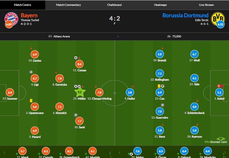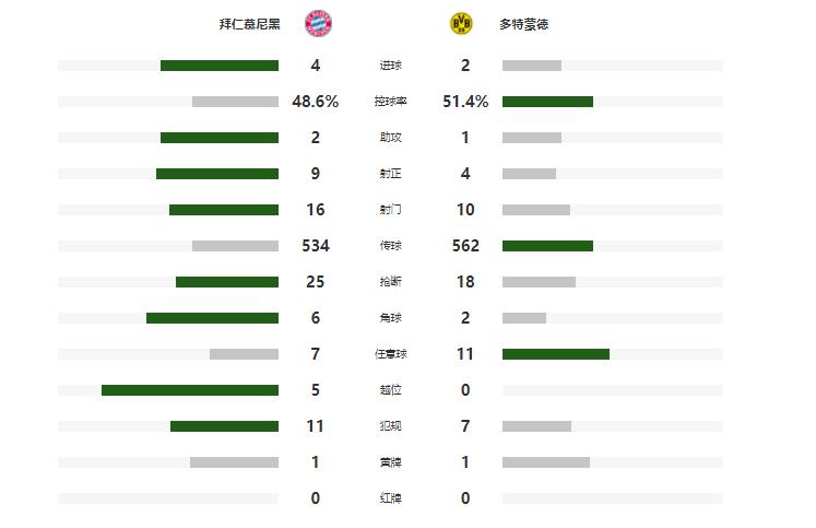 此後,雙方都無法再次改寫比分,最終拜仁主場4-2擊敗多特。