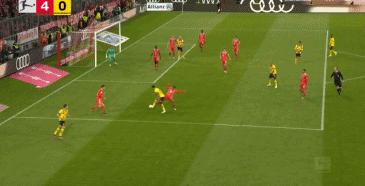 第50分鐘,薩內在外圍送出斜塞球,科曼突入禁區左側單刀捅射破門,拜仁4-0領先。