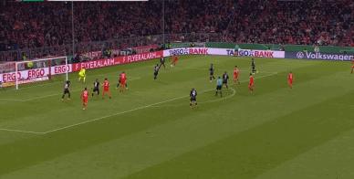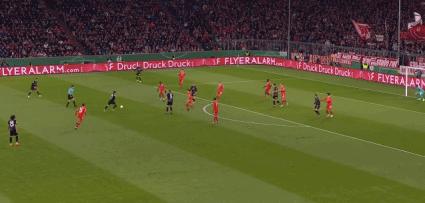 第18分鐘,基米希開出左側角球,於帕梅卡諾泰山壓頂式頭槌破門,拜仁取得1-0領先。