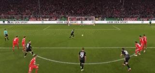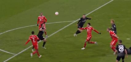 第62分鐘,基米希開出前場左側定位球,格雷茨卡前點頭球攻門,皮球砸在了橫樑上。