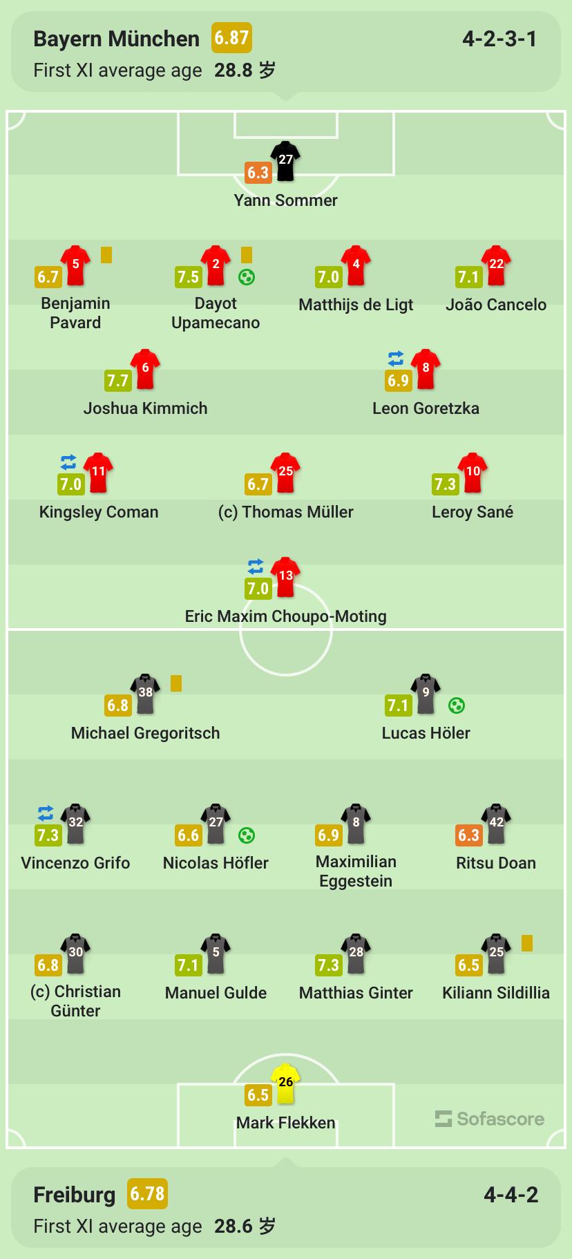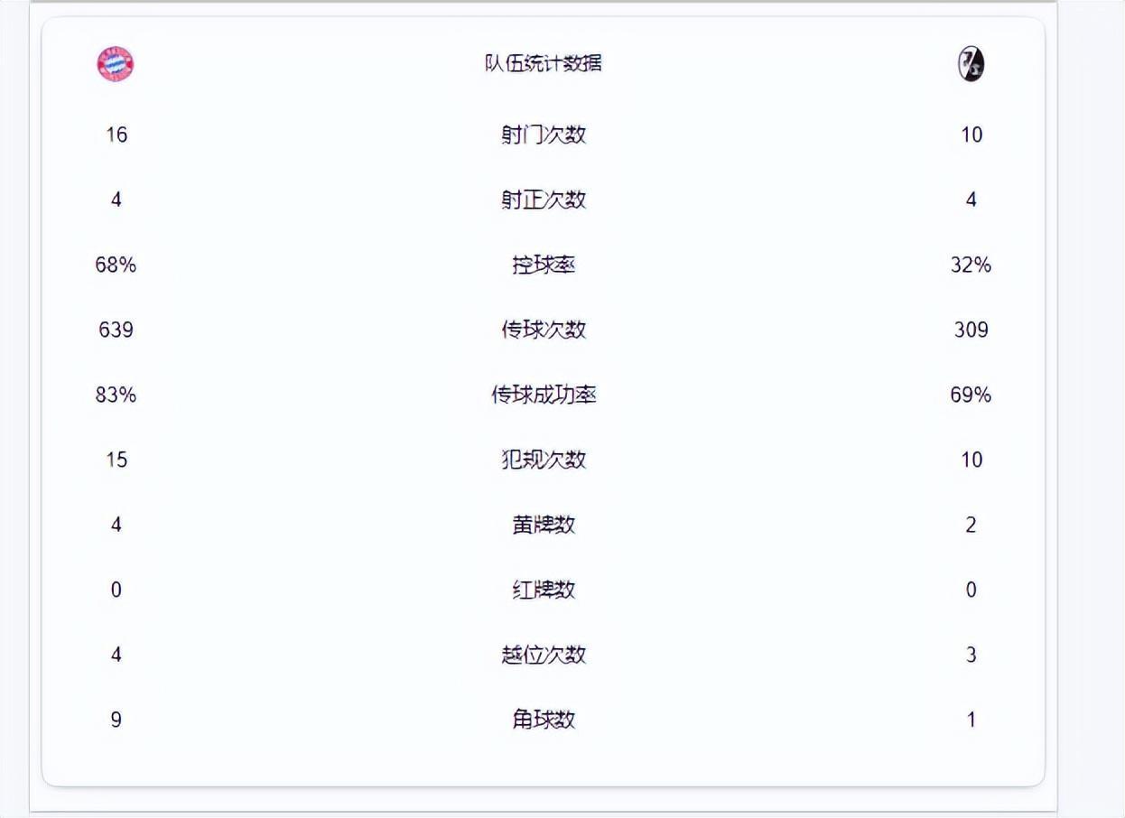 此後,雙方均無法再次改寫比分,最終拜仁1-2不敵弗萊堡出局。