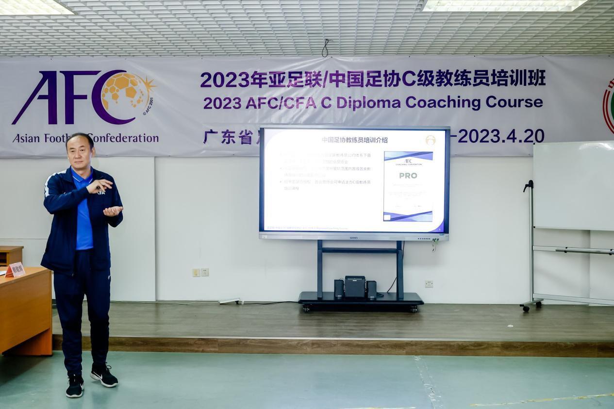 記者王偉報道 4月7日,由廣州市教育局和廣東省足球協會聯合主辦的“2023年廣州市青少年校園足球教師暨中國足協C級教練員培訓班”開班儀式在廣東外語外貿大學大學城校區體育館舉行。來自全市11個區的中小學和市屬學校共24名體育教師參加了培訓。本次C級教練員培訓班在廣東省足球協會的積極支持和配合下順利開班,兩位講師由中國足協技術部選派,廣州體育職業技術學院樂敬忠老師擔任主講師,亞足聯、中國足協職業級教練員王婷婷擔任助理講師。