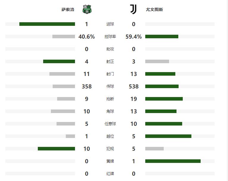 此後,雙方均無法再次改寫比分,最終尤文客場0-1不敵薩索洛。