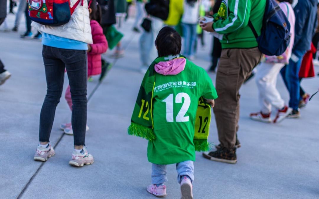 文/陳永 4月15日下午6時,北京工人體育場北門。一位母親正在整理孩子身上的國安球衣,哪怕最小號的球衣,穿在她懷裏四五歲的孩子身上,也顯得頗爲肥大,變成了一個綠色小寶寶,孩子的眼睛盯着工體北門熙熙攘攘的綠色人羣,充滿驚訝和好奇。