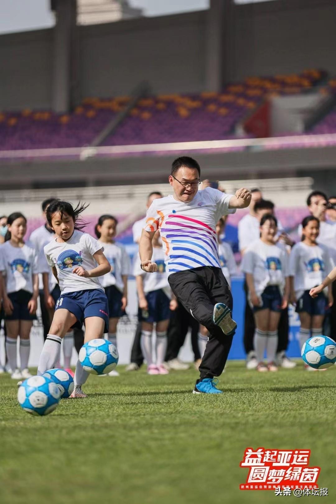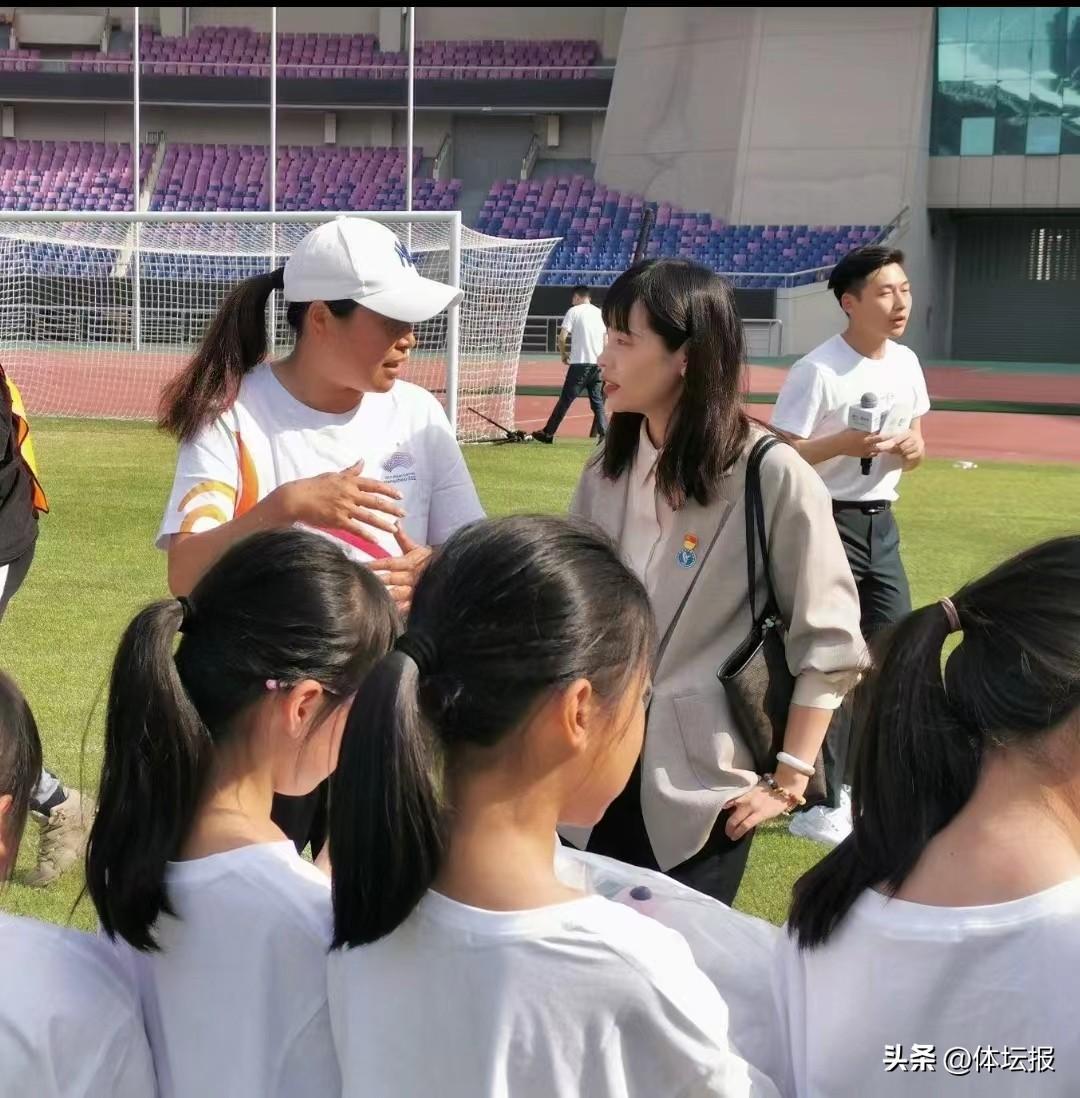 更讓求知女足隊員驚喜的是,現場請到了亞運女足冠軍門將趙燕。如今紮根基層爲女足培養接班人的趙燕是杭州市女足教練,喜歡孩子的她也迫不及待地與小隊員們互動起來:守球遊戲、頂球互動、傳球示範、搶球比賽,簡單的四個活動,就和孩子們打成了一片。