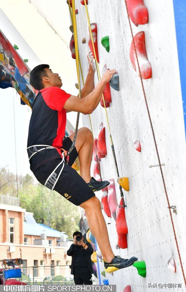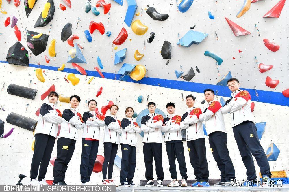 國家攀巖隊全能組主管教練曹榮武(左一)介紹相關情況