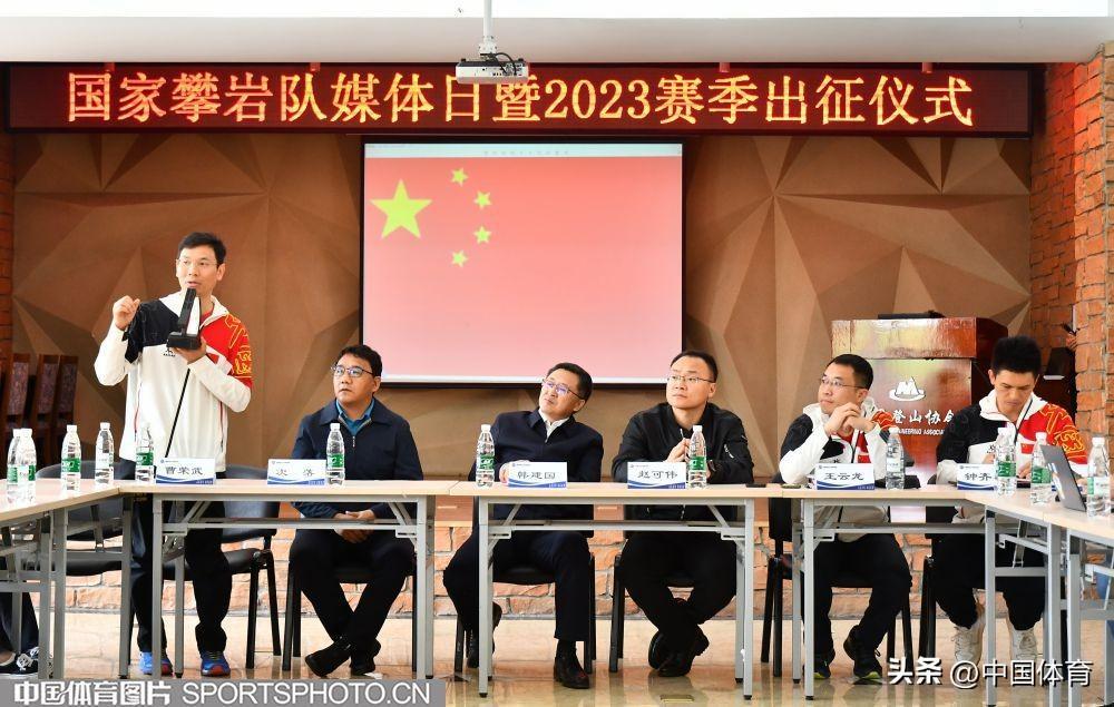 中國體育訊 4月17日,國家攀巖隊媒體日暨2023賽季出征儀式在北京懷柔國家登山訓練基地舉行。全體隊員、教練員一起喊出嘹亮口號,正式開啓2023賽季征程。 國家攀巖隊媒體日是登山中心、中國登山協會2023年媒體之家活動的第一站。未來中心和協會將不定期舉行媒體開放日,發佈賽事活動信息,更新隊伍動態。除了與國家攀巖隊、國家滑雪登山隊深入交流之外,媒體記者還能夠通過這個平臺瞭解並體驗豐富多彩的登山戶外運動,共同助推登山戶外事業發展。(中國體育圖片 白宇 攝)
