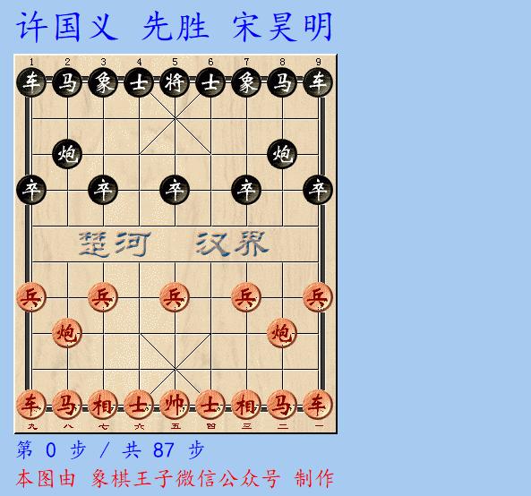 關鍵時刻,賽季迴歸的許國義發威,他在執先手與昆明隊宋昊明的比拼中,執先手採取仙人指路對挺卒,互進左馬,紅方左側三步虎快出子力,右橫車的戰法。