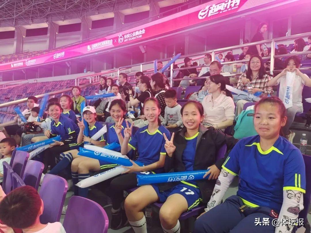 賽場上比得火熱,觀衆席同樣澎湃。當晚,近500名觀衆來到現場爲女足姑娘加油。