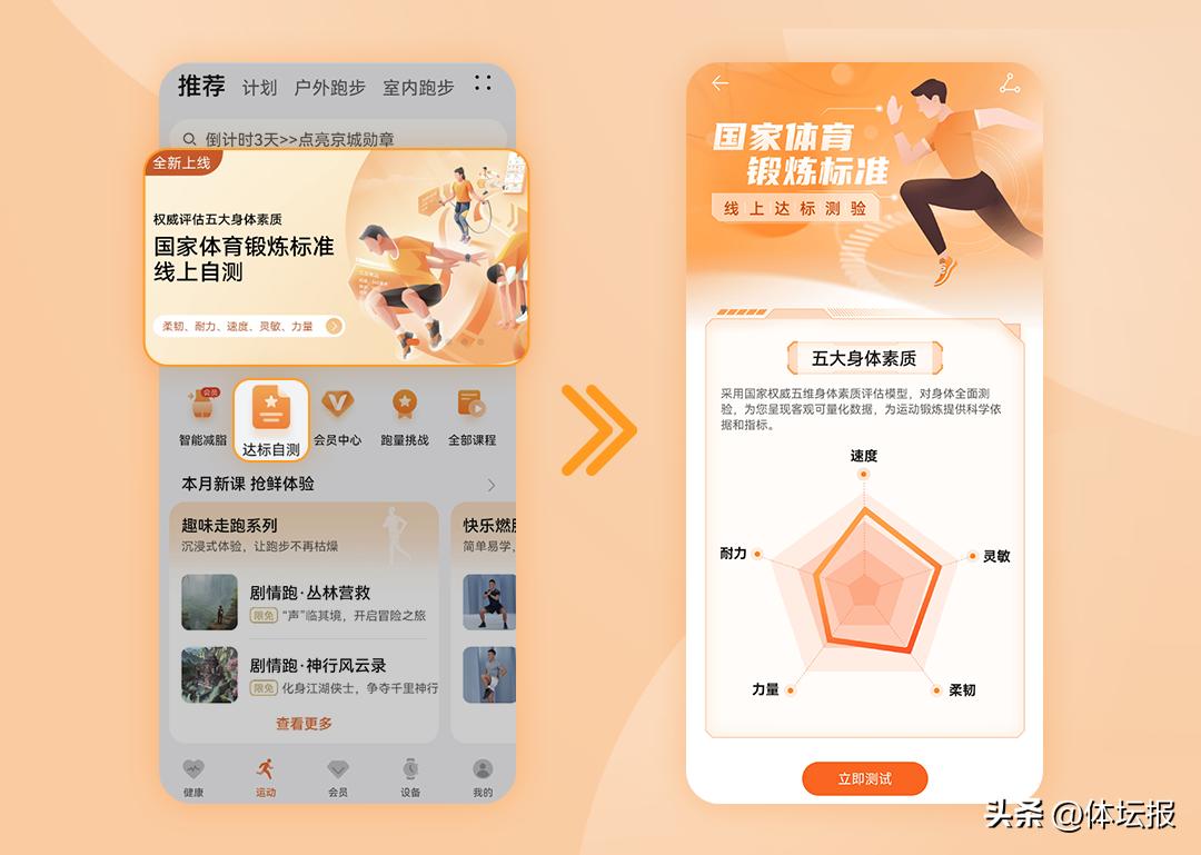 4月16日,由國家體育總局依託華爲運動健康APP建設的國家體育鍛煉標準線上自測平臺正式上線。