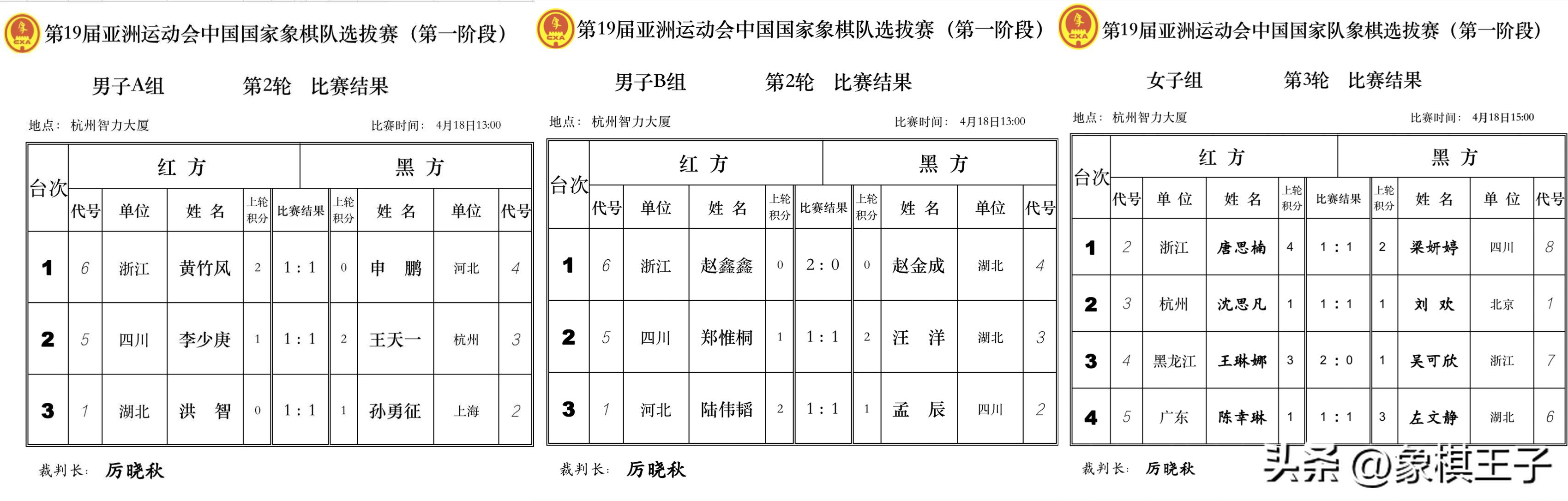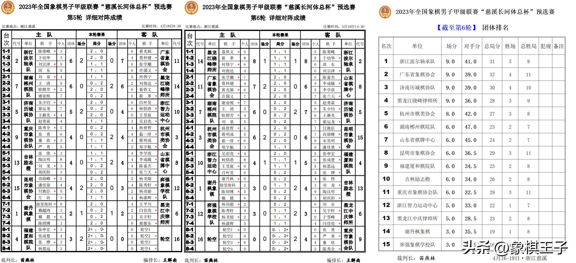 預選賽這邊,歷經三日六輪爭奪,浙江波爾、廣東、濟南、黑龍江9分,杭州二隊8分,湖南、山東、昆明、福建、吉林、重慶6分,浙江、大慶5分,寧波、鄭州3分。