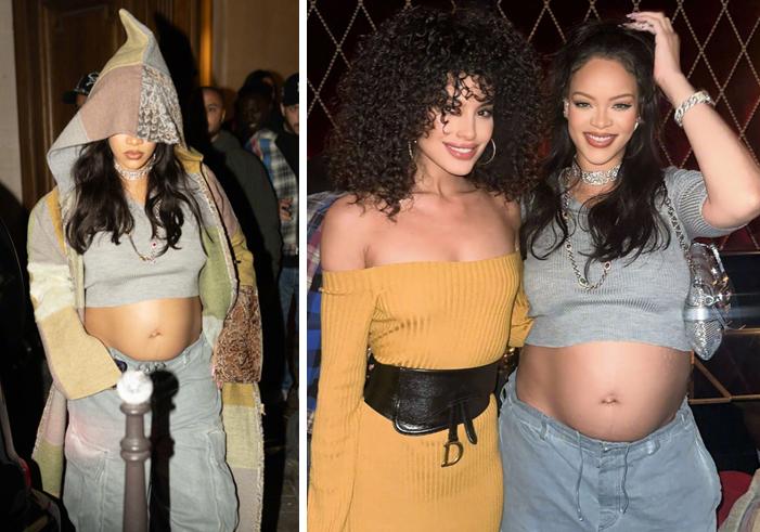 著名歌星蕾哈娜(Rihanna )身穿芬迪1999秋冬系列(老佛爺)拼接色連帽大衣,肩背Gucci包,高調現身巴黎街頭,大大方方地露出二胎孕肚,看起來孕態明顯,距離分娩的日子越來越近了。