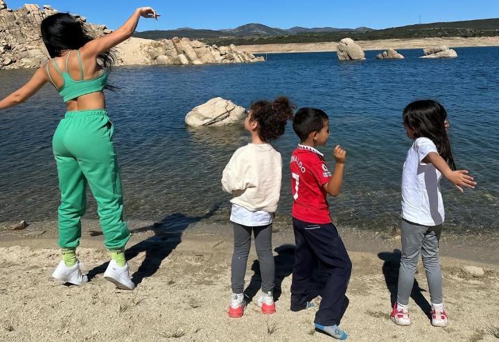 C羅的未婚妻喬治娜曬出了一組近照,她與孩子們一起享受沙漠之旅,感受異域風光。只見,喬治娜穿了一身綠色的套裝,休閒運動服,把身體包裹得嚴嚴實實的,好身材完全無法展露,但她還是打心底裏開心,與孩子們沙漠綠洲邊上扔石頭玩,頗爲童趣。