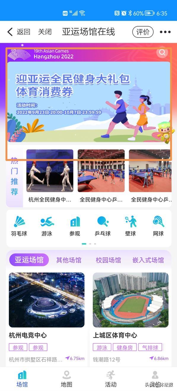 根據此前發佈的杭州市體育場館惠民十條和喜迎亞(殘)運惠殘十條,杭州將高標準、高質量、高水平舉辦亞運盛會,同時也最大限度放大亞運效應,讓全民共享亞運紅利。在全市層面發放數字消費券的基礎上,市體育局發放全民健身大禮包(體育消費券),各區、縣(市)根據實際發放“體育消費券”。
