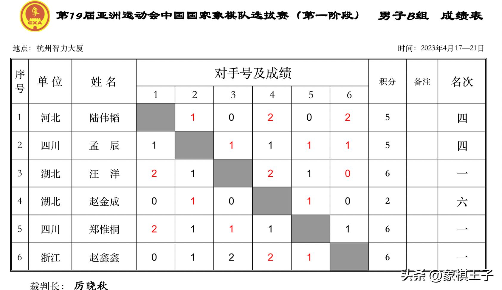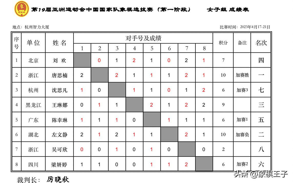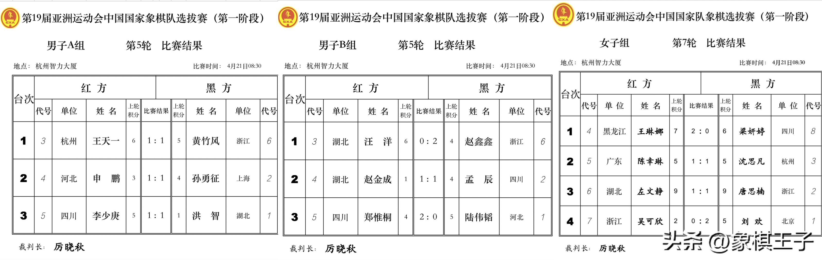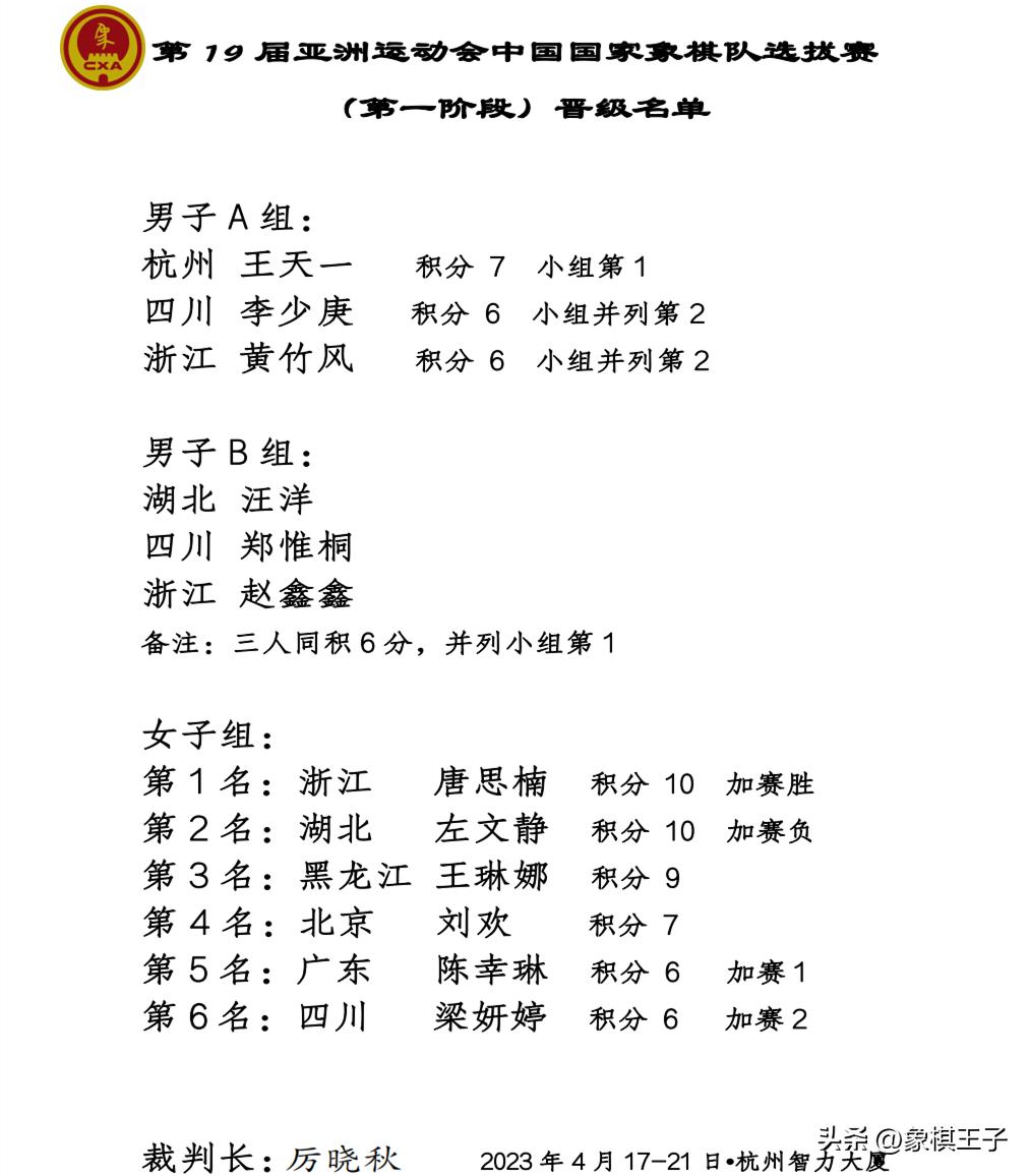 亞運選拔一階段戰罷,馬上進行快棋賽、個人賽,快棋賽22-27日,個人賽4.30-5.7。