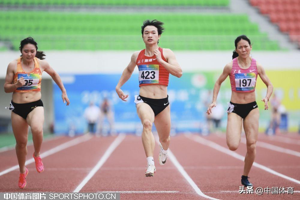男、女100米決賽中,廣東隊陳冠鋒和湖南湘煤隊黃美霞,兩人奪冠成績分別爲10秒38和11秒42;