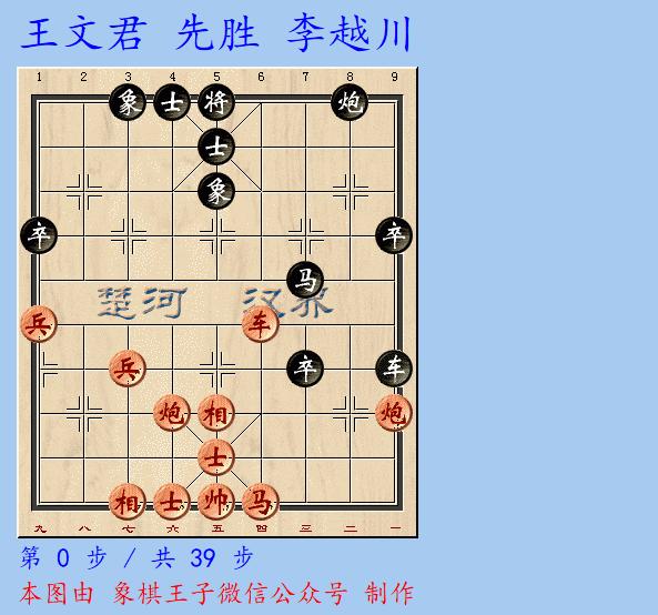 黑棋丟子,形勢陷入被動,王文君發力,進入車炮兵仕相全對車雙卒士象全,局面官勝,王文君多子之勢一舉拿下。
