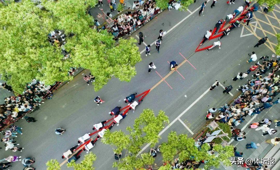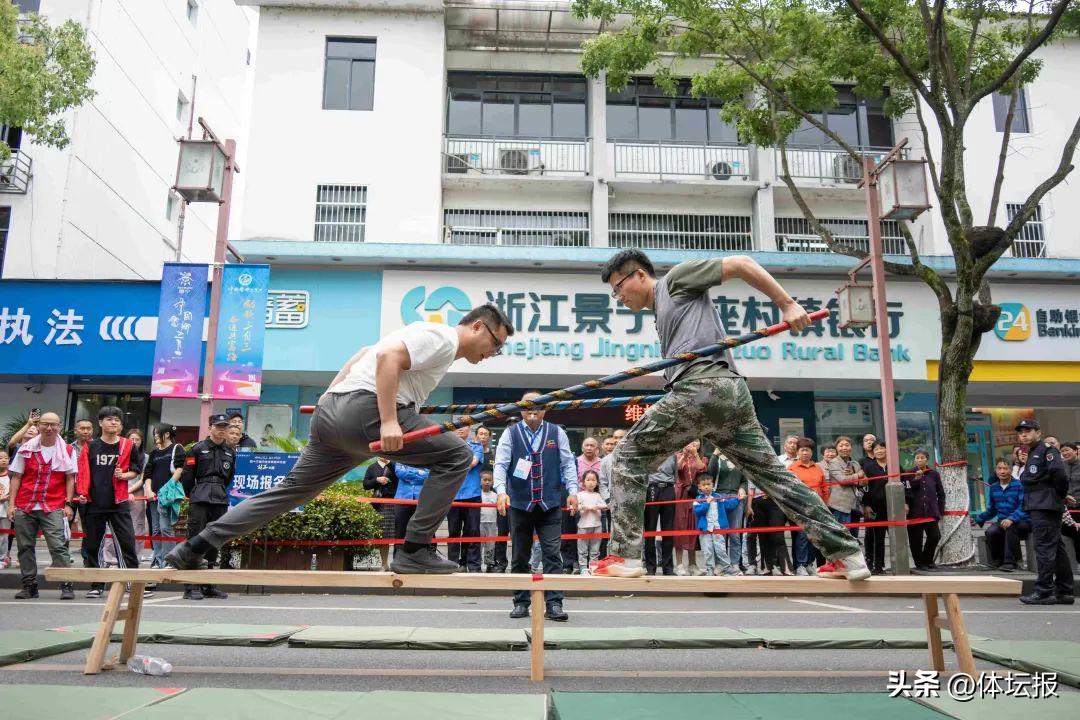 下午2點,大賽正式開始,共吸引300多名運動員參賽,活動還設了互動項目和闖關項目,遊客可以沉浸式體驗畲鄉傳統體育活動。道路邊,也再次造就裏三層外三層的人潮景象。“我是景寧本地人,例如‘抄槓’‘搖鍋’這些體育活動我從小就開始玩了。”參賽選手廖渝濤表示,自己不追求比賽名次,重在參與。