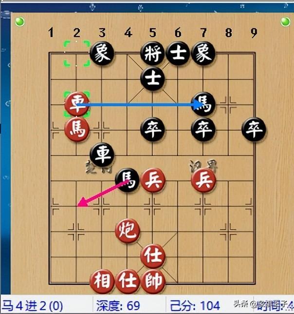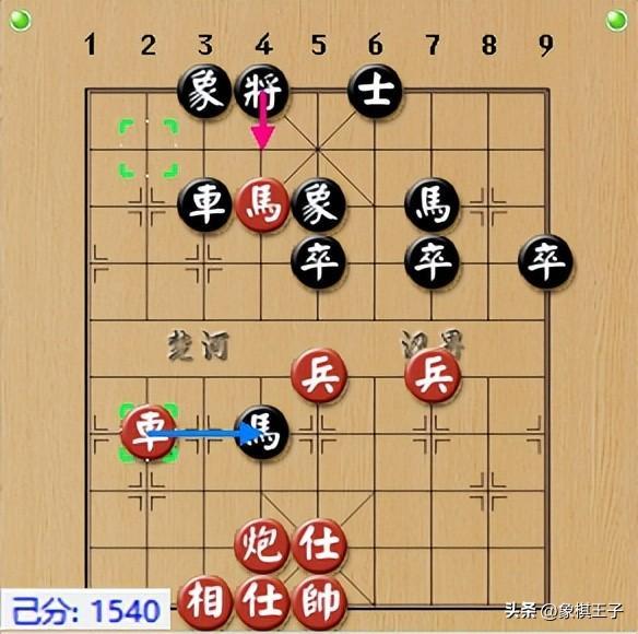 孟辰殺力強悍,紅棋隨後車八退二,絕命一手,脅喫黑7路馬,黑方解招只能馬4進2,棄馬破圍。