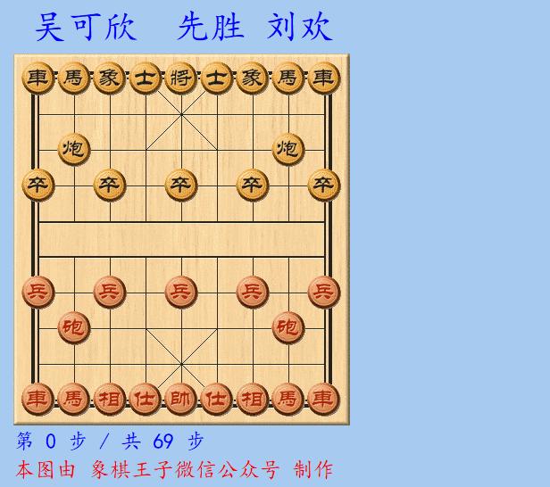 這太難想,劉歡不慎超時作負,吳姐先下一城,其後,第二局,劉歡換先執紅,戰入車炮仕相全對車馬雙士之地。
